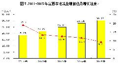对外贸易:全市实现进出口总值28500万元,比上年增长4.02%,增速比上年回落25.34个百分点,其中,完成出口18415万元,增长53.36%;完成进口10085万元,下降34.48%。