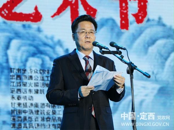 戴超在致辞时说,近年来,定西坚持把发展文化旅游作为构建生态产业体系、推动绿色发展崛起、打赢脱贫攻坚战的重要载体和有力抓手,致力唱响“渭水源头·李氏故里·当归定西”宣传口号,着力创建“生态体验、寻根探源、红色教育、康养休闲、乡村旅游”特色品牌,不断推动文化和旅游各领域、多方位、全链条深度融合,实现了经济效益和社会效益的双丰收。特别是通渭县连续举办了八届书画文化艺术节,吸引全国各地的书画名家、书画经纪人和书画企业家交流交易,促进了书画创作、培训、装裱、交易、收藏、鉴定等行业的协调发展,成为激发市场活力、带动群众脱贫的新引擎。