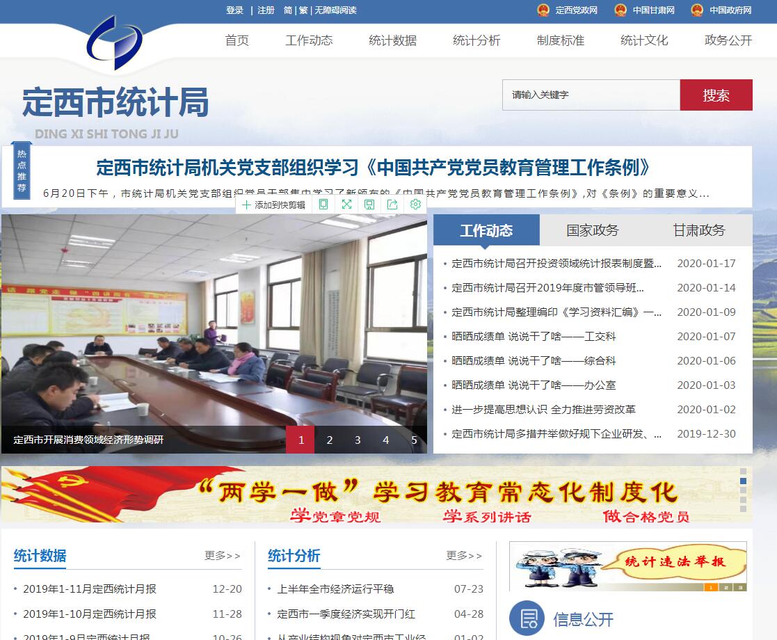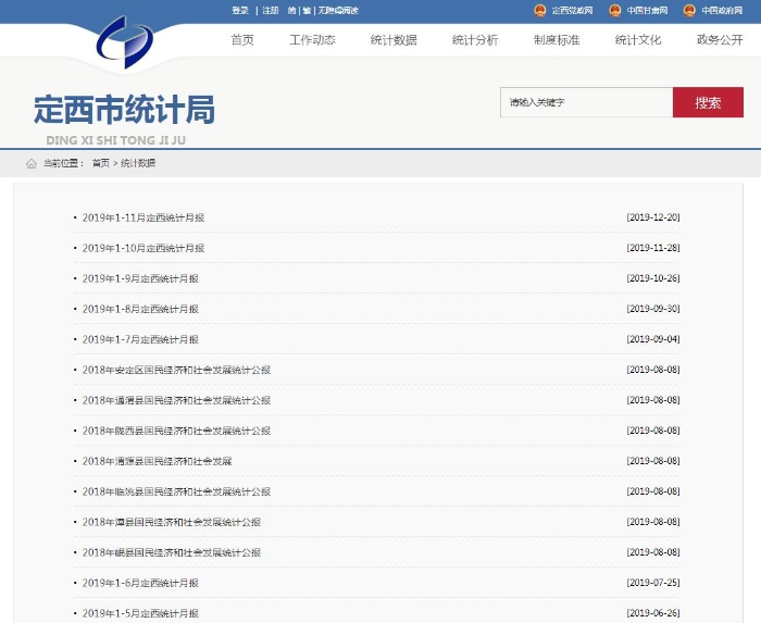 2019年,定西市统计局政务公开工作紧紧围绕市委、市政府重大工作决策部署和中心工作,以数据质量为中心,以改革创新为动力,全面提升统计服务质量和水平,以积极回应社会关切、提升统计服务能力为目标,主动强化政务信息公开力度,完善公开机制,丰富公开内容,优化公开平台,服务意识进一步增强,全局政务信息适时更新,主动公开。