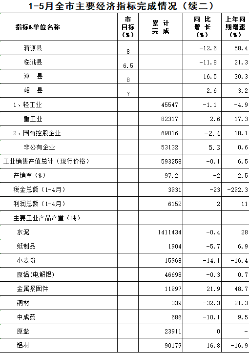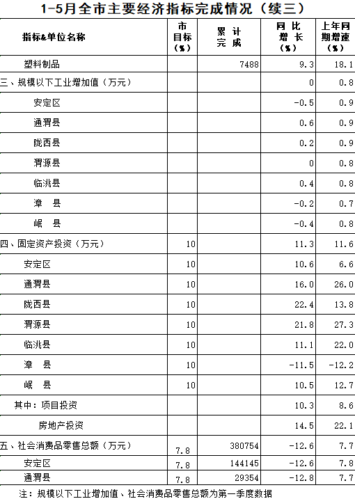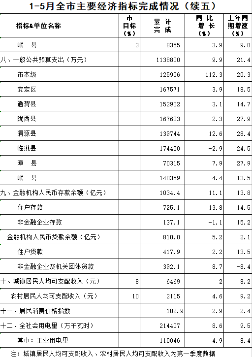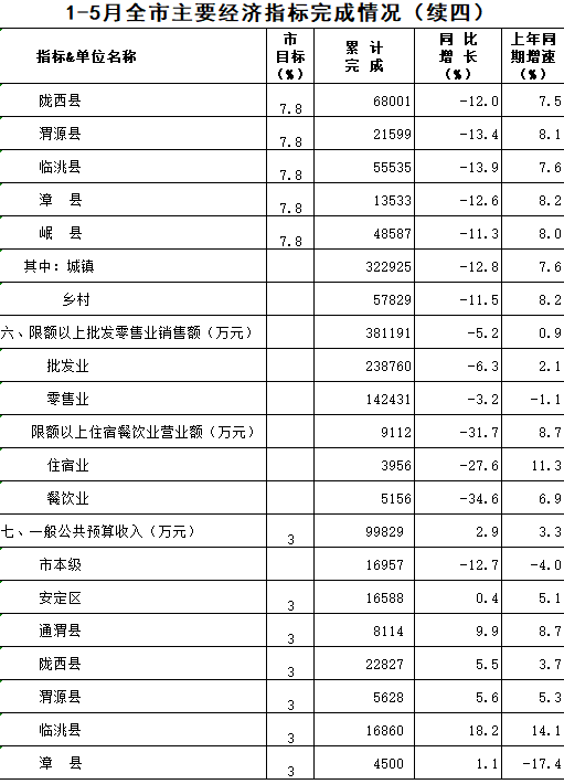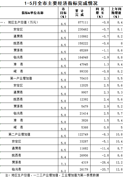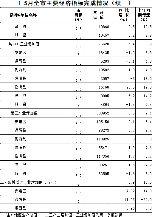 2020年1-5月定西统计月报