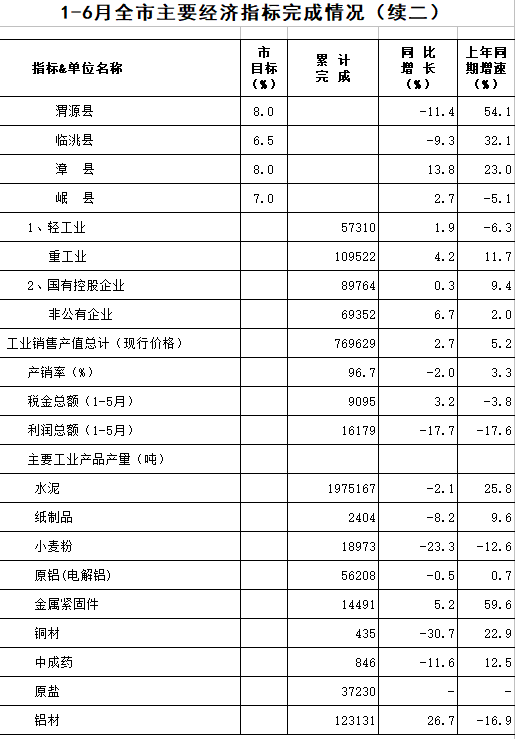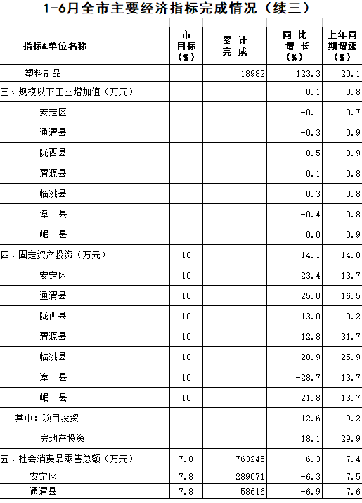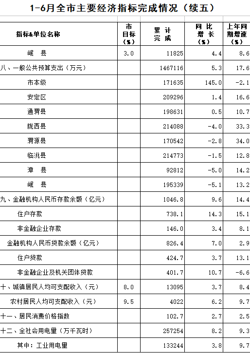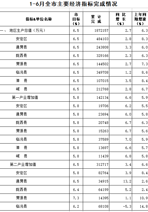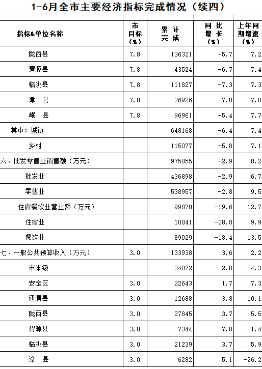 2020年1-6月定西统计月报