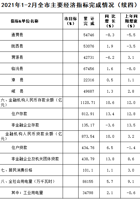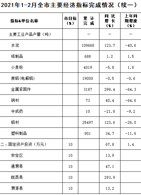 2021年1-2月定西统计月报