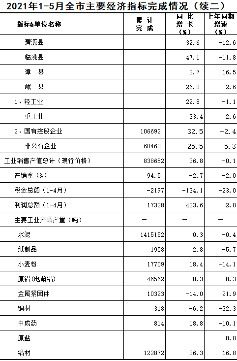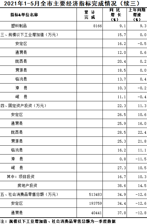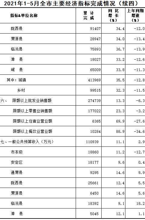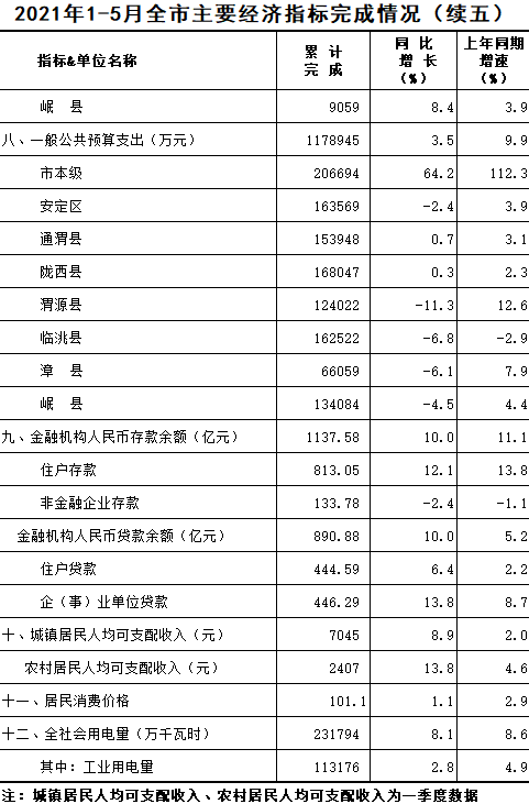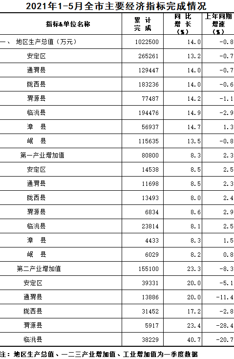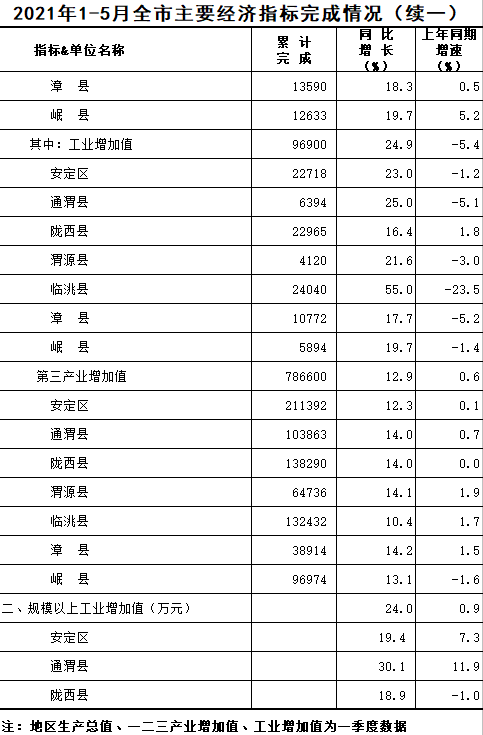 2021年1-5月定西统计月报