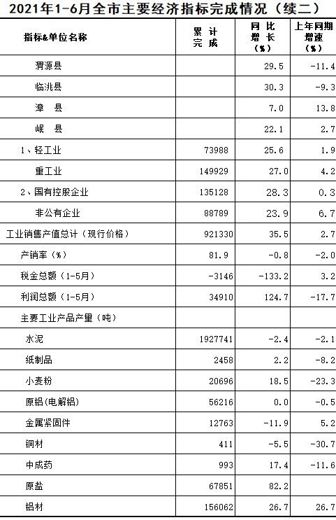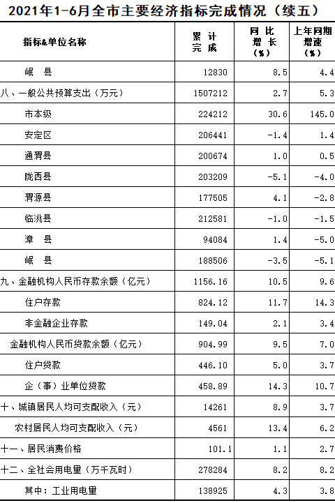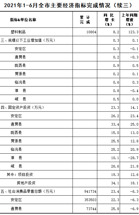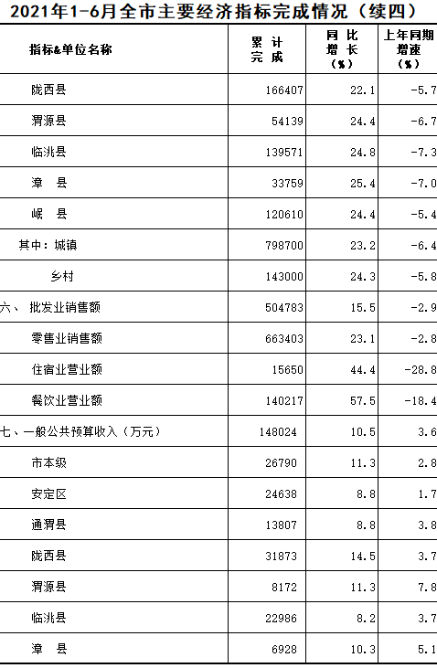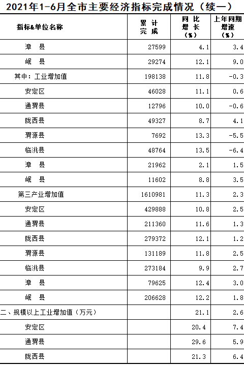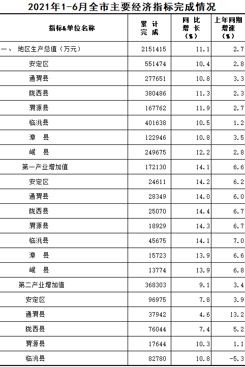 2021年1-6月定西统计月报
