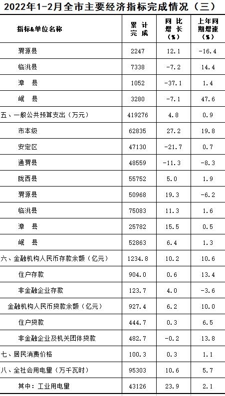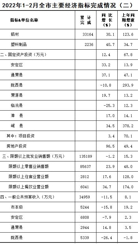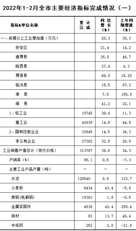 2022年1-2月定西统计月报