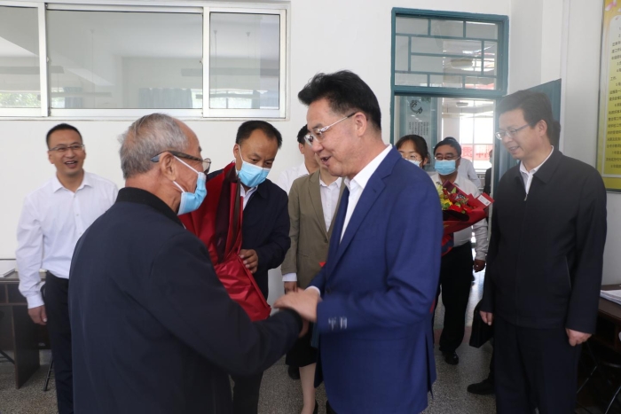 在第38个教师节即将到来之际,9月7日上午,市委书记戴超专程来到定西一中,看望慰问一线教师和退休教师代表,并通过他们向全市广大教师、教育工作者和离退休教师致以节日的问候和诚挚的祝福,祝愿大家身体健康、工作顺利,教有成果、学有成效。