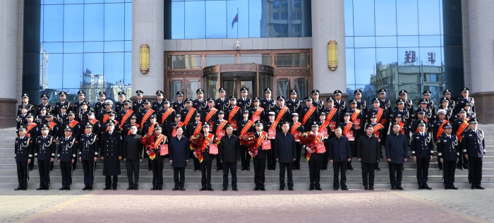 1月10日上午,在第四个“中国人民警察节”到来之际,市委书记汪尚学,市委副书记、市长武和谦,市人大常委会党组书记温卫东,市政协主席高永平一行来到市公安局,看望慰问公安民警、辅警代表,向全市广大公安民警、辅警及家属致以节日的祝贺和美好的祝愿。