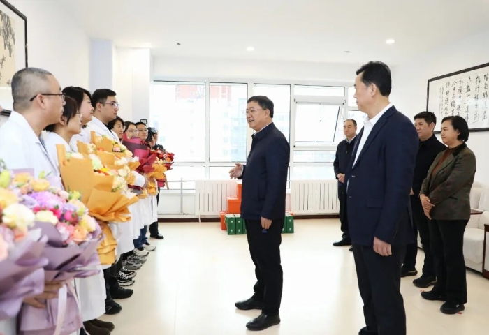 在长春中医药大学附属医院定西医院,汪尚学、武和谦看望慰问派驻医务专家,感谢他们为定西卫生健康事业作出的贡献。汪尚学说,长中附医专家团队扎根定西、倾情奉献,将先进的诊疗技术、管理理念和优质服务带到定西,有效提升了定西相关专科的医疗服务能力,赢得了广大患者的高度认可和赞誉,希望各位专家继续发挥专业优势和桥梁纽带作用,助力学科建设与人才培养,为定西卫生健康事业贡献智慧。